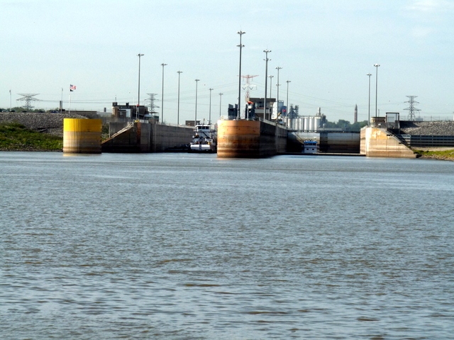 We spent three days in Alton IL waiting for Chain of Rocks Lock to reopen and allow passage down the Mississippi River. The lock was closed for five days, and the tows (tugs and barges) were waiting along both sides, above and below the lock. Let's just say that after 120 miles in the Mississippi, 60 miles up the Ohio River and 35 up the Cumberland River we can confidently discuss with a tow captain whether we'll pass on "one" or "two" whistles.
